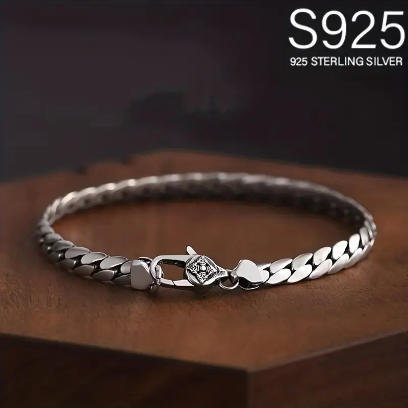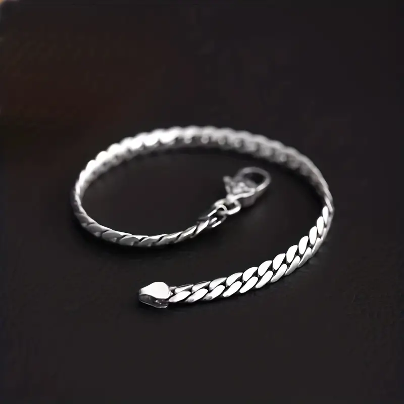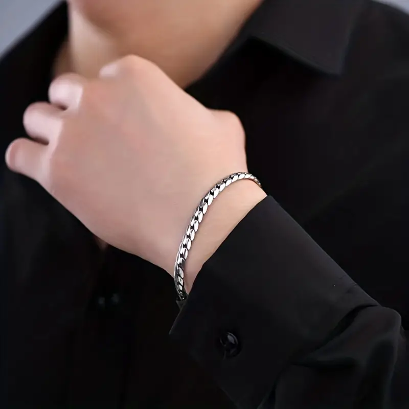 1pc Men’s Silver Cuban Bracelet, Retro Craft Daily Wear Men’s Women’s Bracelet