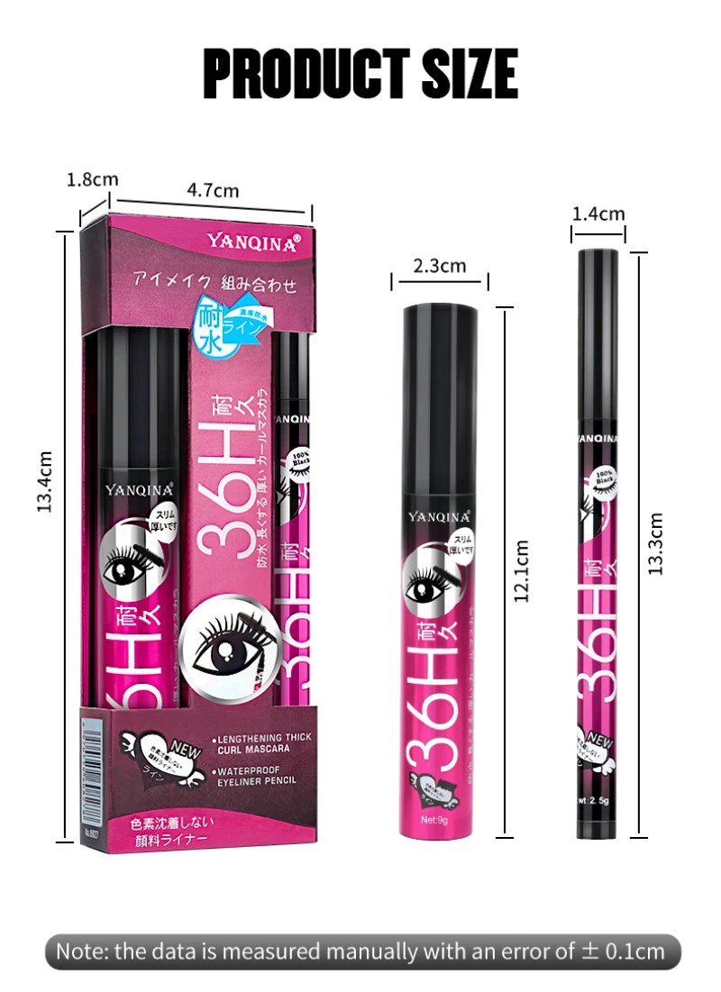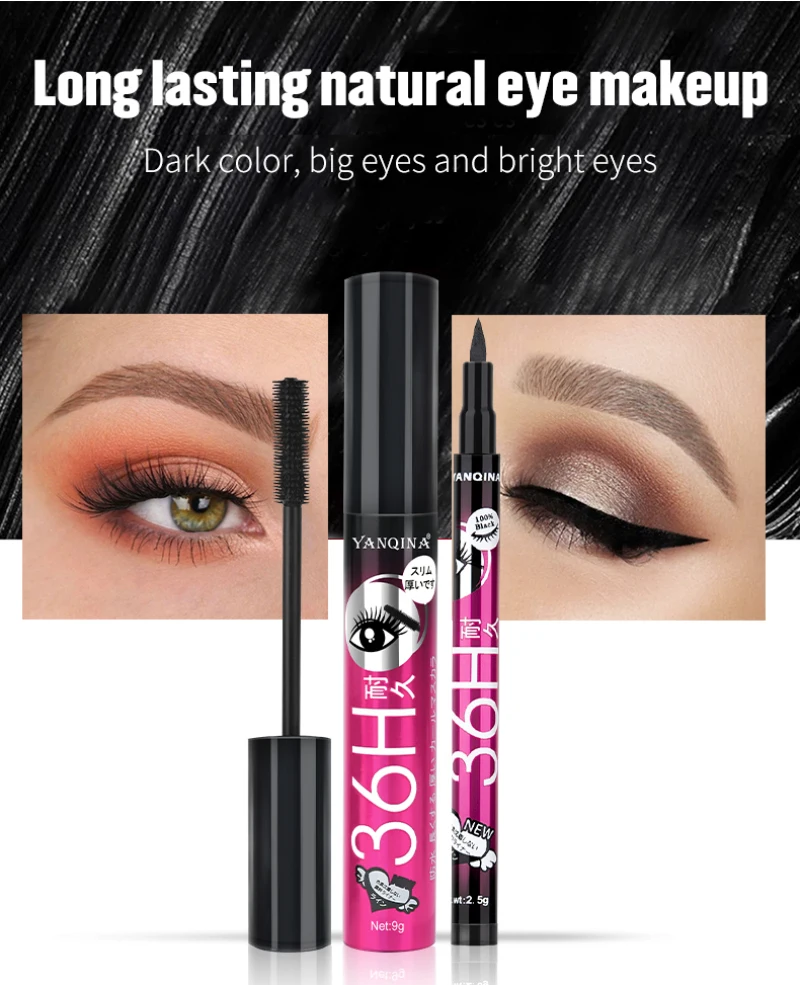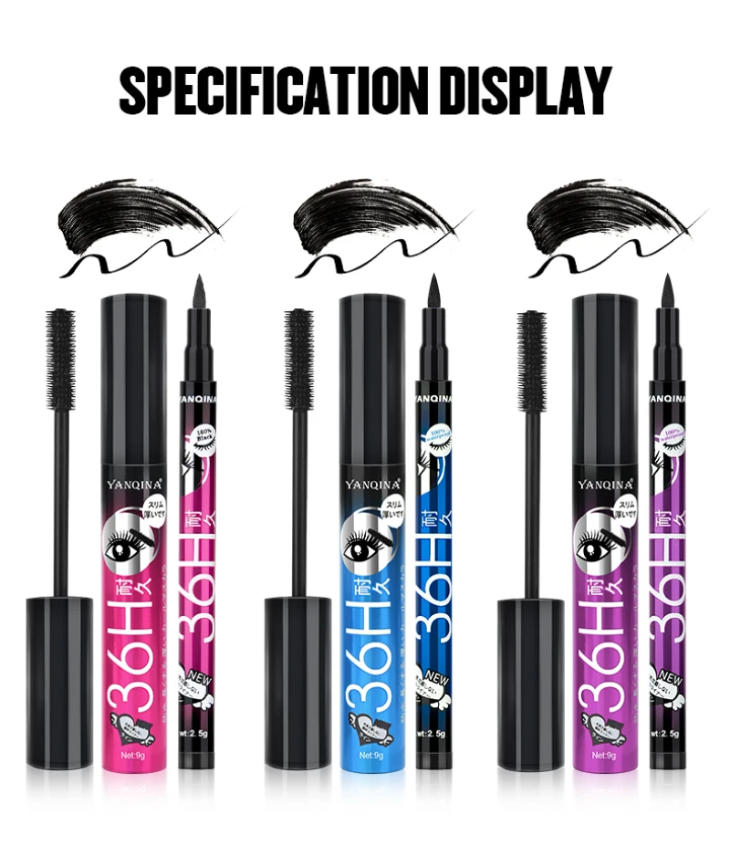 Feature 1: Black Mascara Eyeliner Thick Curling Eyelashes 2pcs Set