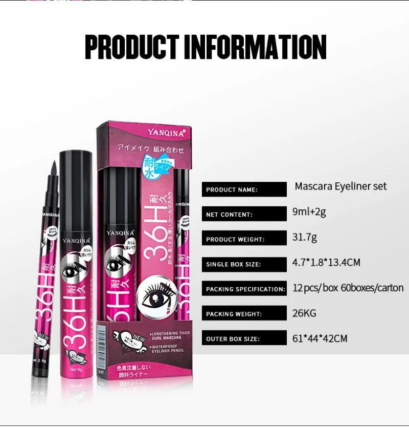 2 in 1 Makeup Set Mascara Eyeliner Pen Lashes Lift Curling Waterproof Eye Liner Pencil Eye Makeup