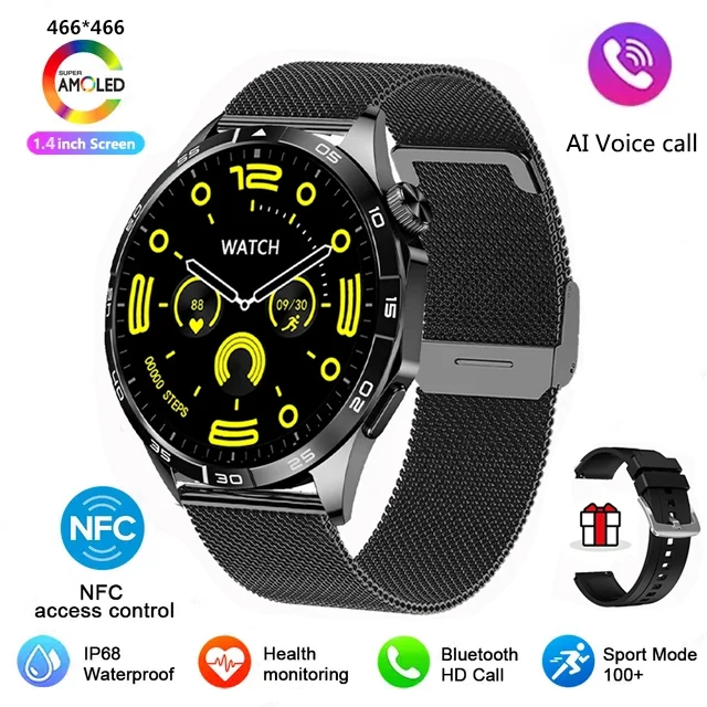 Ultra Mate Business Smart Watch Men Bluetooth Call Compass 100+ Sport Modes Smartwatch Waterproof Watches for Huawei IOS: Bluetooth Call Smart Watch Men For Huawei Watch GT4 466*466 HD Full Touch Screen GPS Sports 1.43 inch IP68 Waterproof Smartwatch