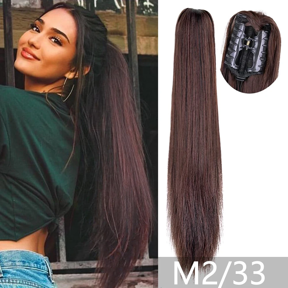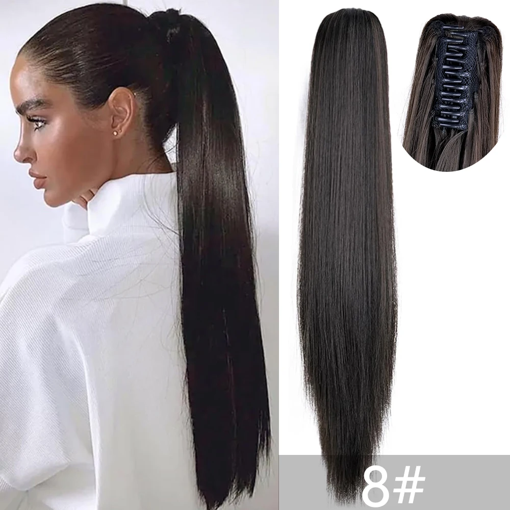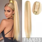 22Inch Synthetic Ponytail Hair Extension Long Straight Claw Clip Ponytail Heat Resistant Natural Wave For Women Blonde Hairpiece