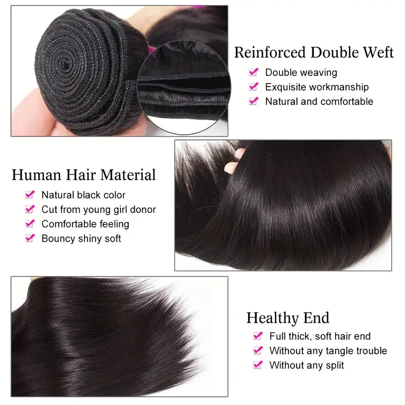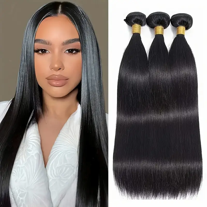 3pcs Straight Human Hair Bundles Brazilian Human Hair Weave Extensions Hair Natural Black Color Straight Virgin Human Hair Bundles For Women