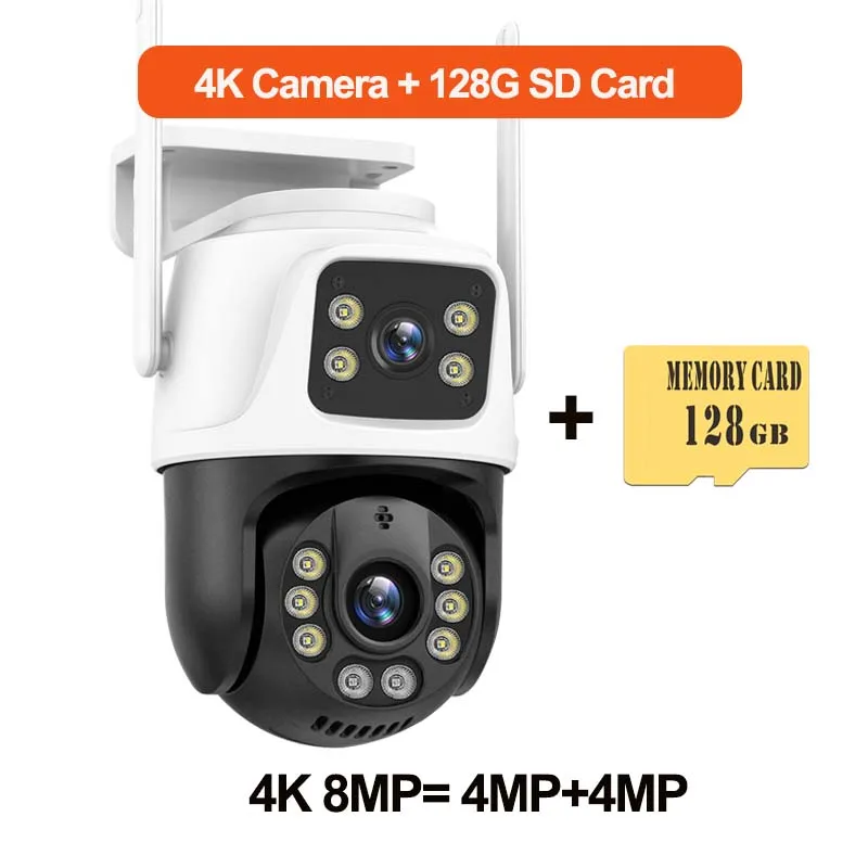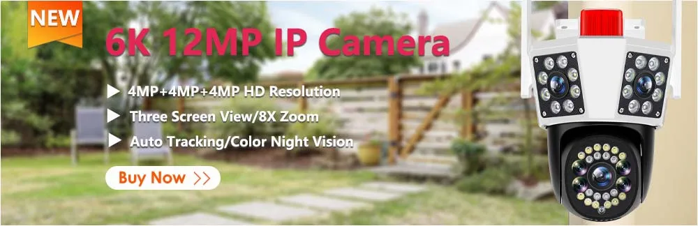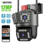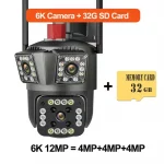 6K 12MP Three Lens WiFi Camera Three Screens Outdoor IP Camera 8X Zoom Security Protection CCTV Video Surveillance PTZ Auto Tracking