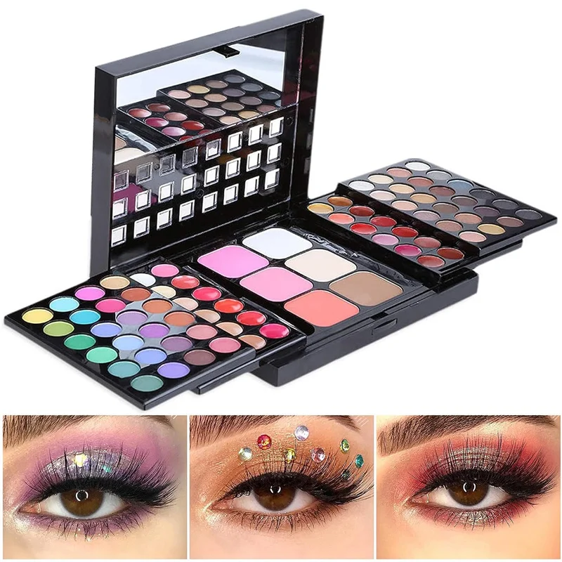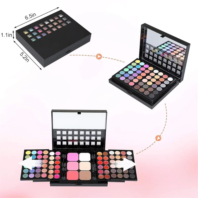 【All In One Makeup Gift Kit】 All-in-One Makeup Kit is designed for the bold and the beautiful. With more than 78 colors of eye shadows, lip glosses, concealers, contour Powder and blushes, this multi-purpose kit is perfect for achieving any full-face look. What’s more, its versatile design and array of color options makes it an ideal gift for both makeup professionals and beauty.