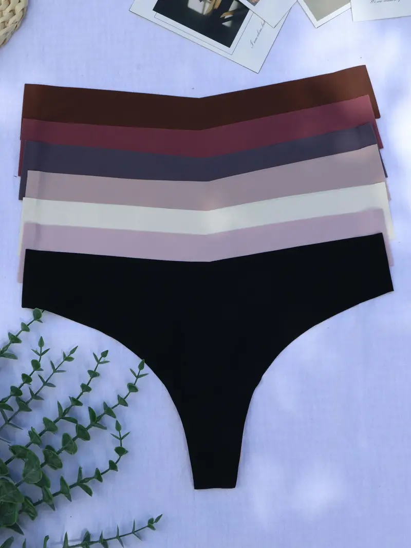 8pcs Solid Seamless Thongs, Comfy Low Waist Intimates Panties, Women’s Lingerie & Underwear
