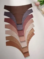 10pcs Seamless Solid Thongs, Comfy & Breathable Stretchy Intimates Panties
