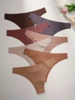 7pcs Seamless Solid Thongs, Breathable & Comfy Stretchy Intimates Panties