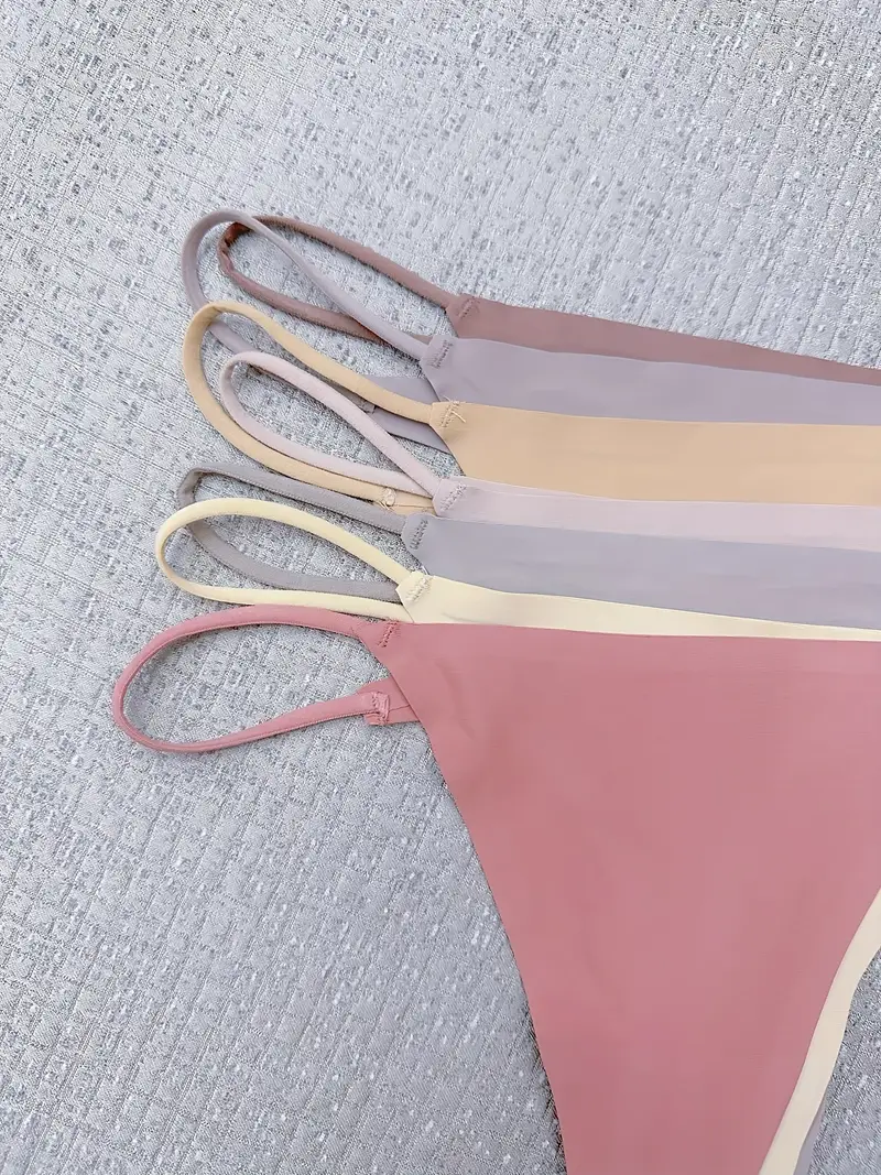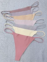 6pcs Simple Solid Thongs, Soft & Comfy Stretchy Intimates Panties, Women’s Lingerie & Underwear