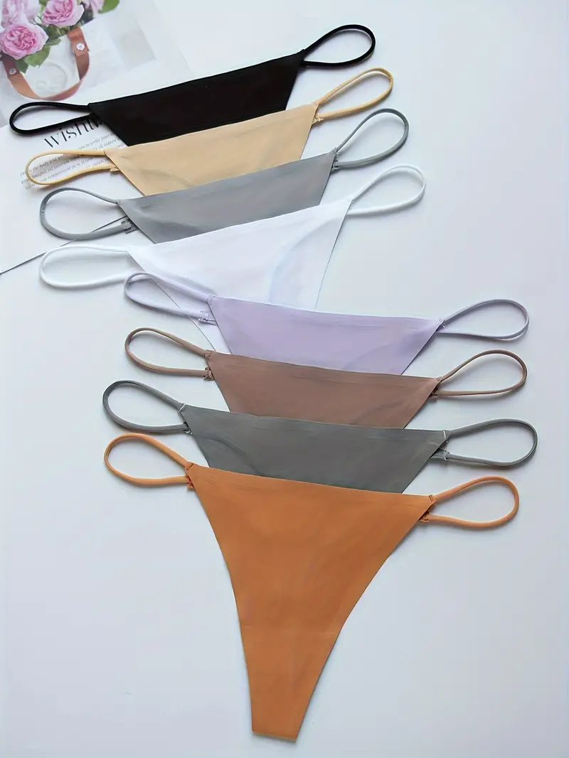 7pcs Seamless Solid Thongs, Soft & Comfy Stretchy Intimates Panties, Women’s Lingerie & Underwear