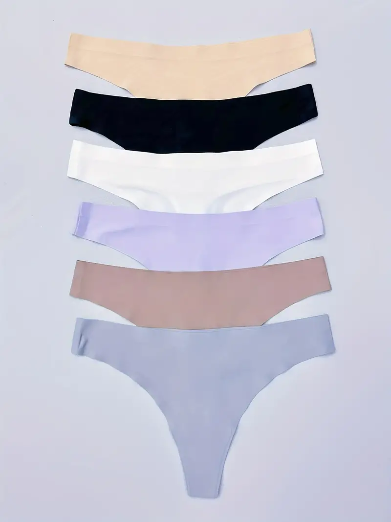 6pcs Seamless Solid Thongs, Soft & Comfy Stretchy Intimates Panties, Women's Lingerie & Underwear $5.39