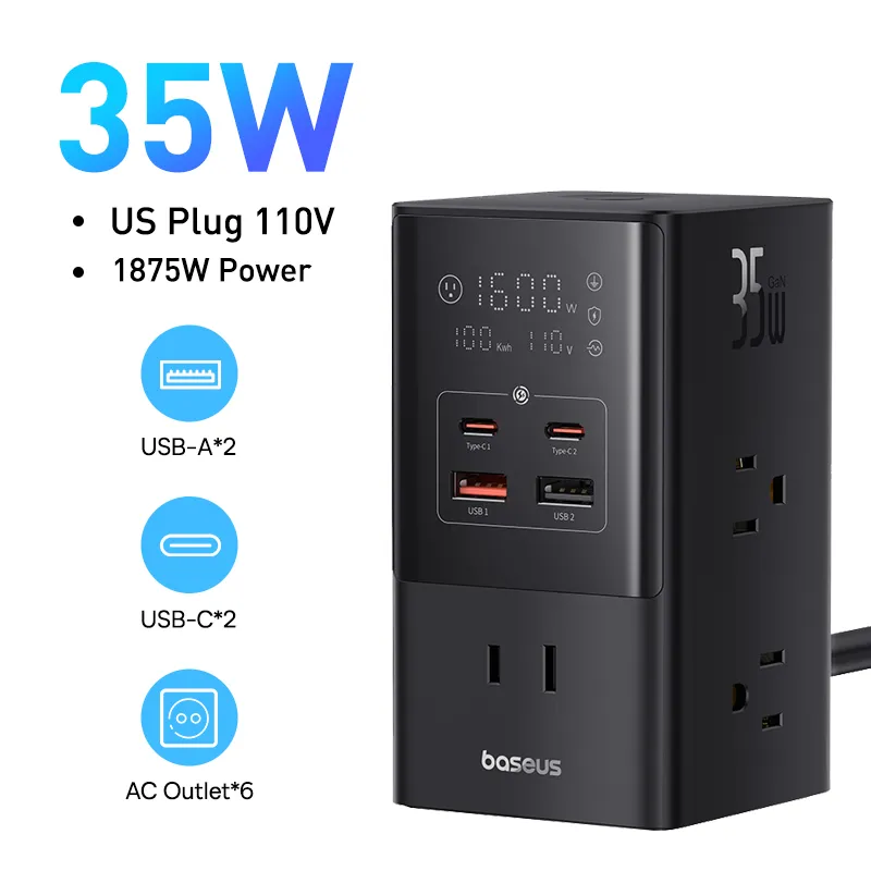 Product: Baseus PowerCombo Tower Digital PowerStrip 3AC+2U+2C 35W
