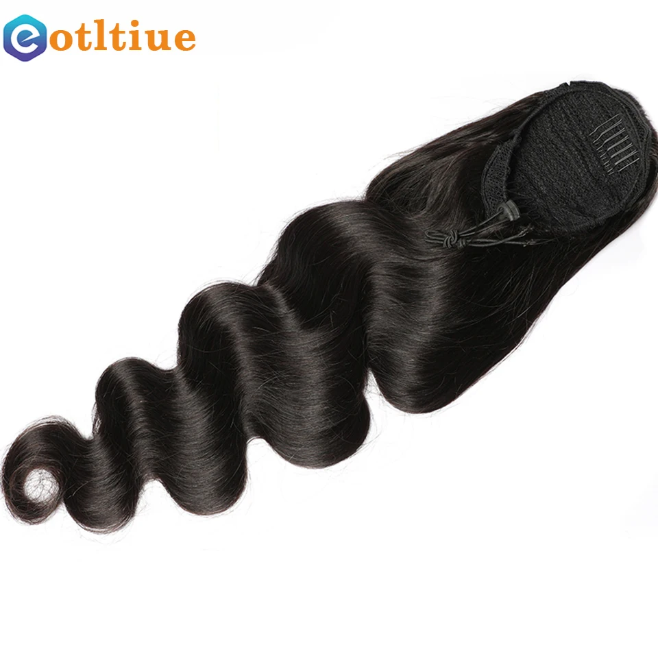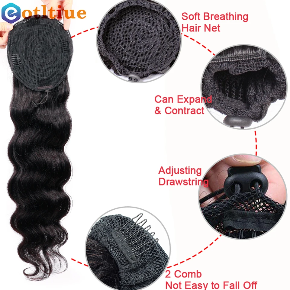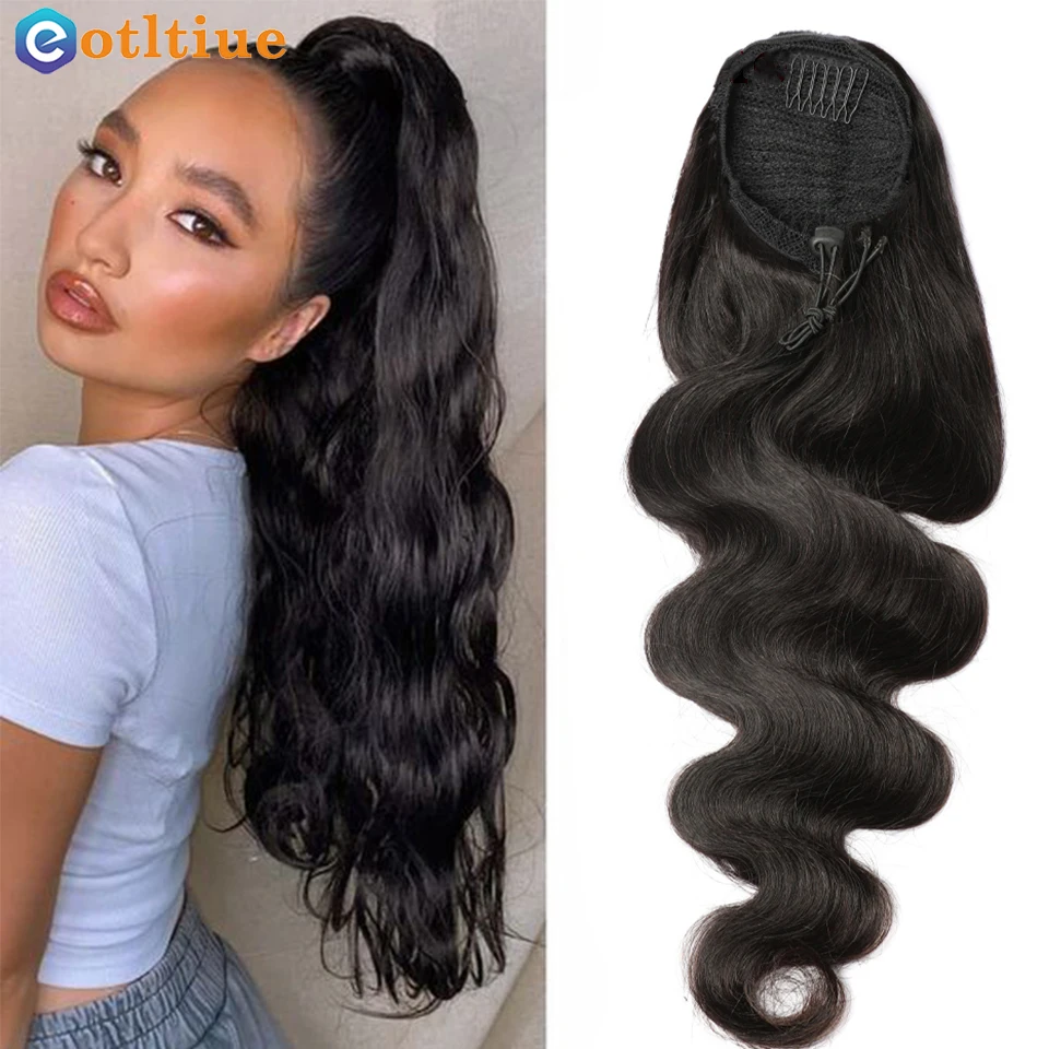 Body Wave Human Hair Drawstring Ponytail Clip In Brazilian Remy Hair Ponytail Natural Color Heat Resistant Pony Tail For Women