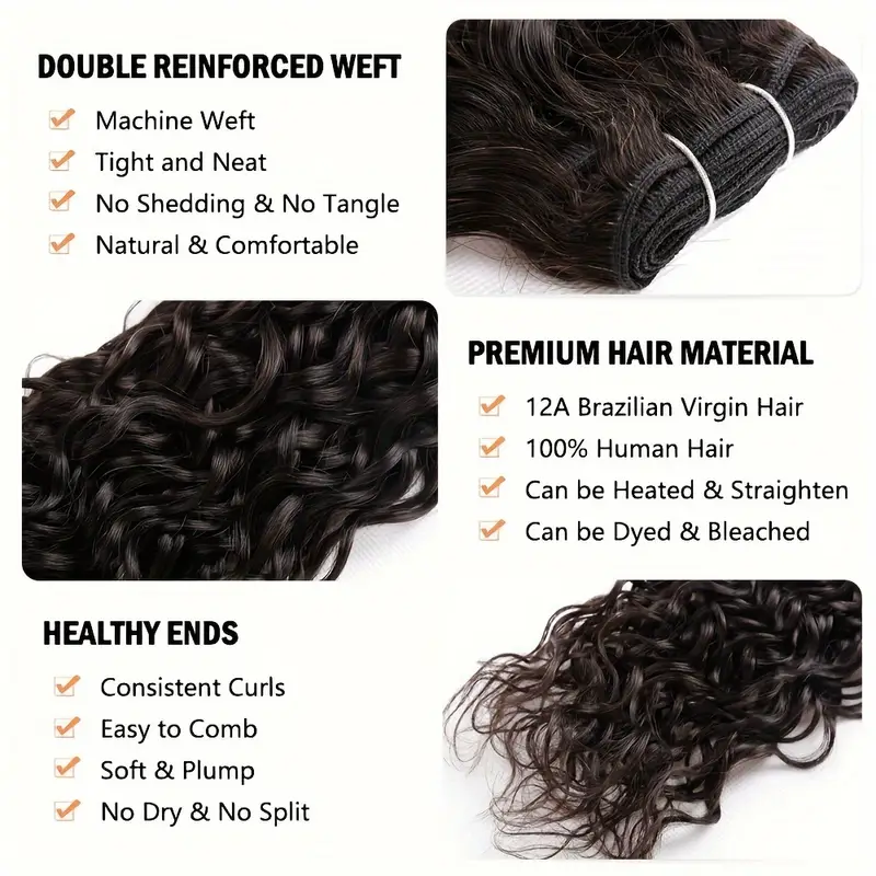 Home Hair Products Brazilian Water Wave Hair 3 Bundles Wet And Wavy 100% Virgin Remy Human Hair Bundles Ocean Wave Bundles Water Wave Bundles For Women Natural Black Color Hair Extension