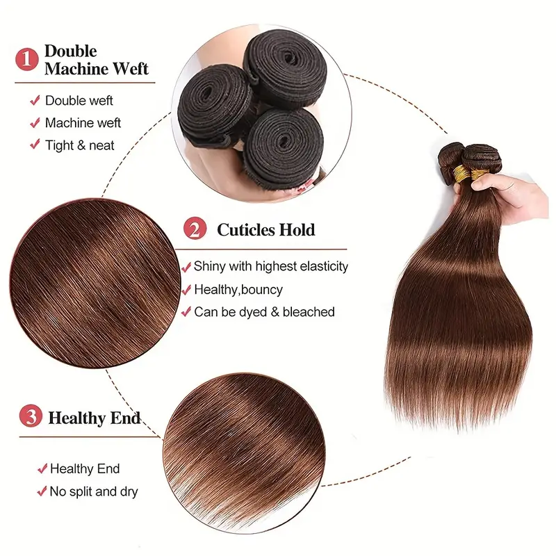 Brown Bundles Human Hair Light Brown Straight Bundles #4 Bundles Brazilian Straight Human Hair 16-28 Inch Unprocessed Brazilian Human Hair Virgin Remy Hair Extension