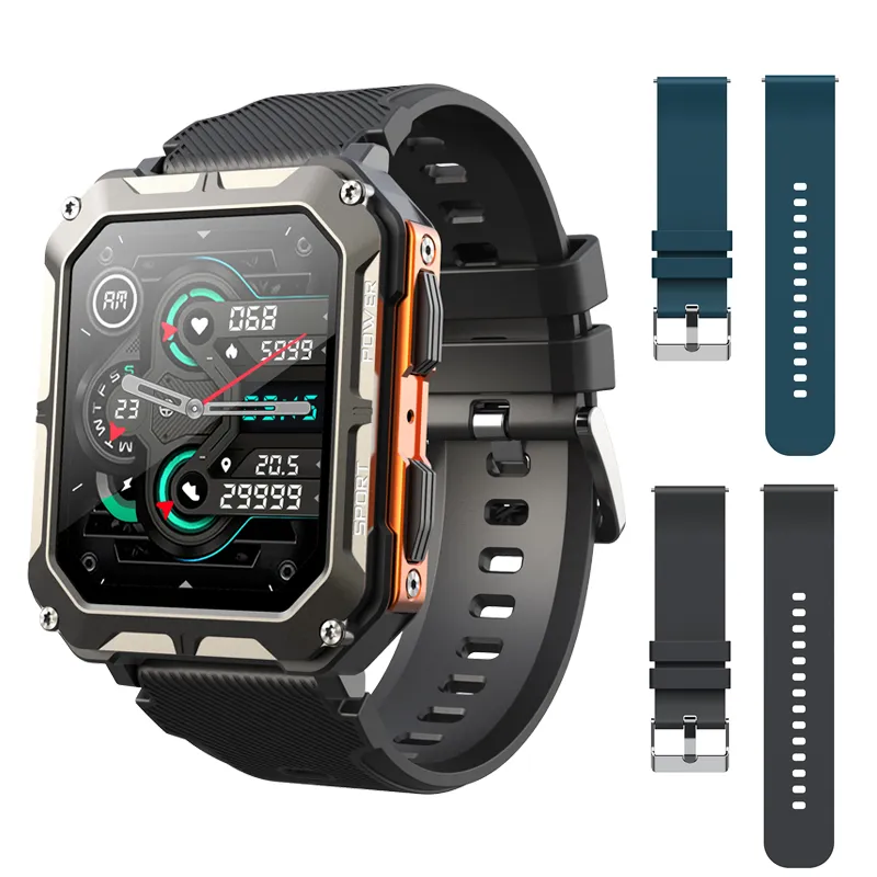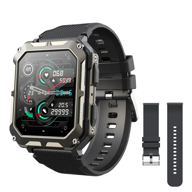 — More functions: Step meter, weather, camera control, music control, stopwatch, alarm clock, timer, sitting reminder, breathing training, calculator, brightness adjustment, Mute