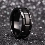 Fashion Men’s 8mm Gold Color Groove Beveled Edge Black Tungsten Wedding Carbon Fiber Ring Punk Gear Wheel Stainless Steel Ring For Men