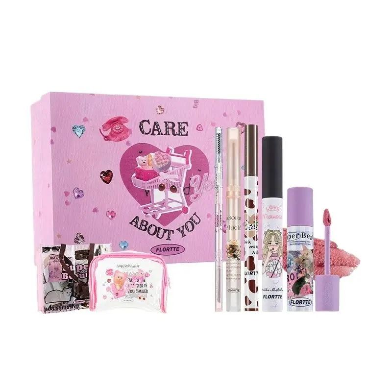 The Floria Novice Limited Packaging Gift Box includes everything you need for your daily makeup routine. It comes with 1 eyebrow pencil, 1 eyelash primer, 1 eye shadow silkworm laying pen, 1 eyeliner liquid pen, and 1 limited lip cream.