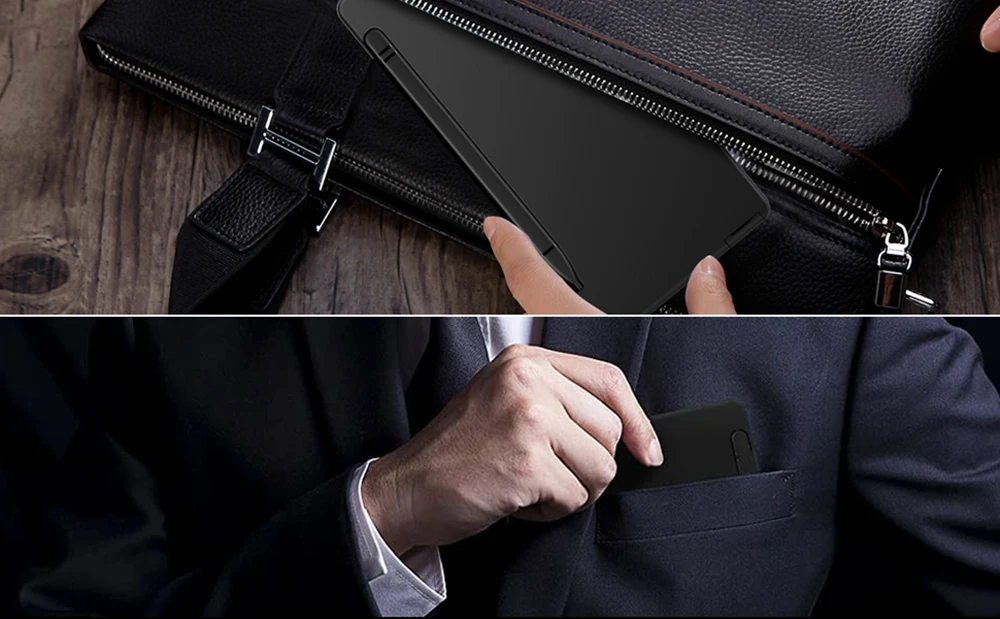 The stylus is magnetic and can be attached to the storage slot to prevent loss.