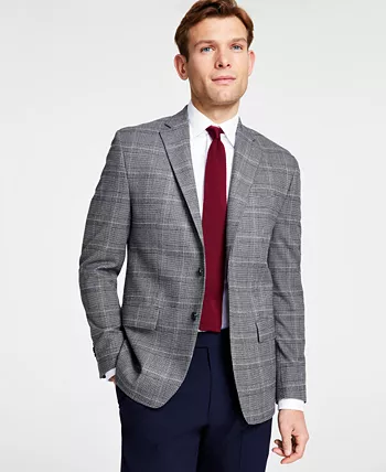 Make your polished look pop with the stylish plaid showcased on this comfortable stretch sport coat from Michael Kors.