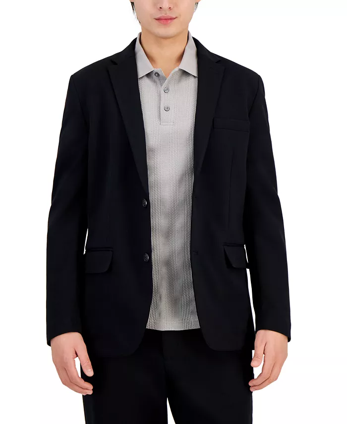 Easily transition from work to a night out with this modern, metropolitan-styled suit jacket by Alfani, rendered in a soft fabric for a luxe feel.