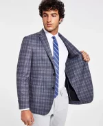 A classic crisp-tone check combines with a modern slim-fit and a casual patch pocket design to offer the best of all worlds on this Bar III knit blazer.