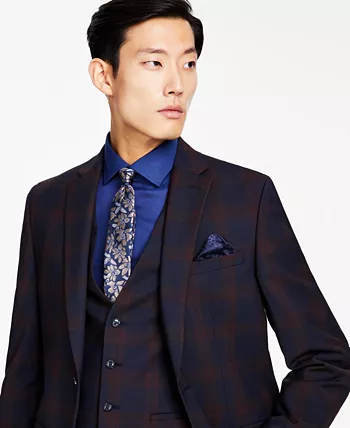 Stay stylish at work through the weekend with the slim fit and fresh plaid of this contemporary suit jacket from Bar III®.