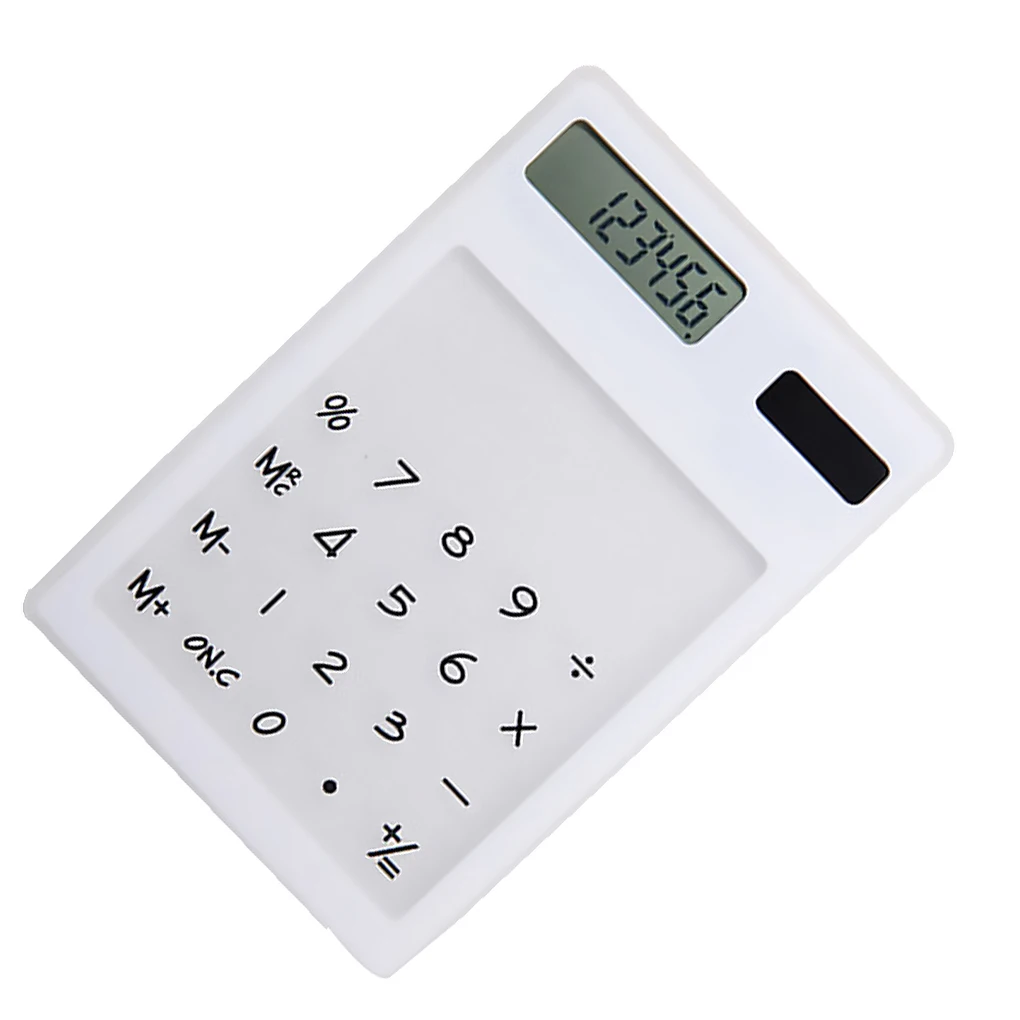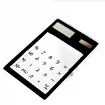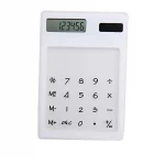 The size of this transparent touching screen calculator is 12*8*0.6cm, mini size is portable for carry.