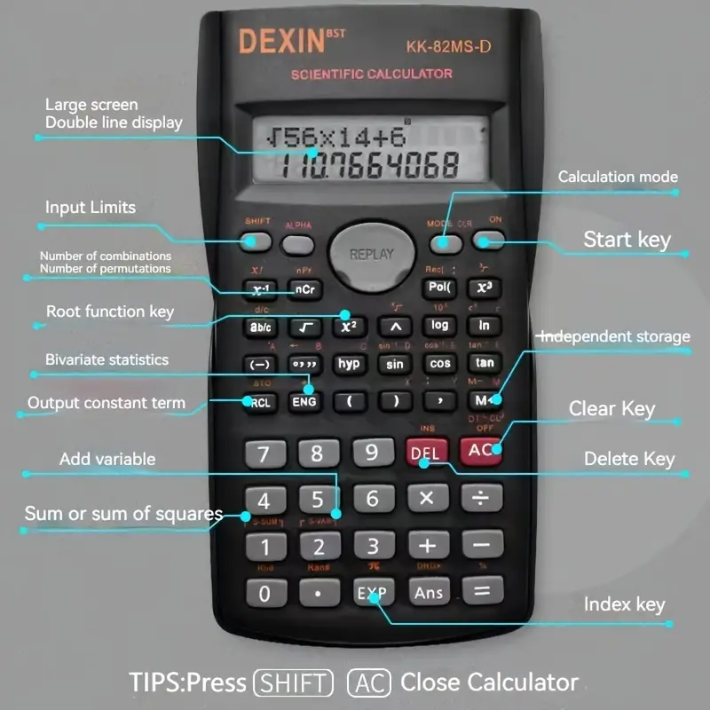 1pc DEXIN KK-82MS-D (Battery Model) Multifunctional Scientific Calculator Function Machine 240 Functions Double-line Display