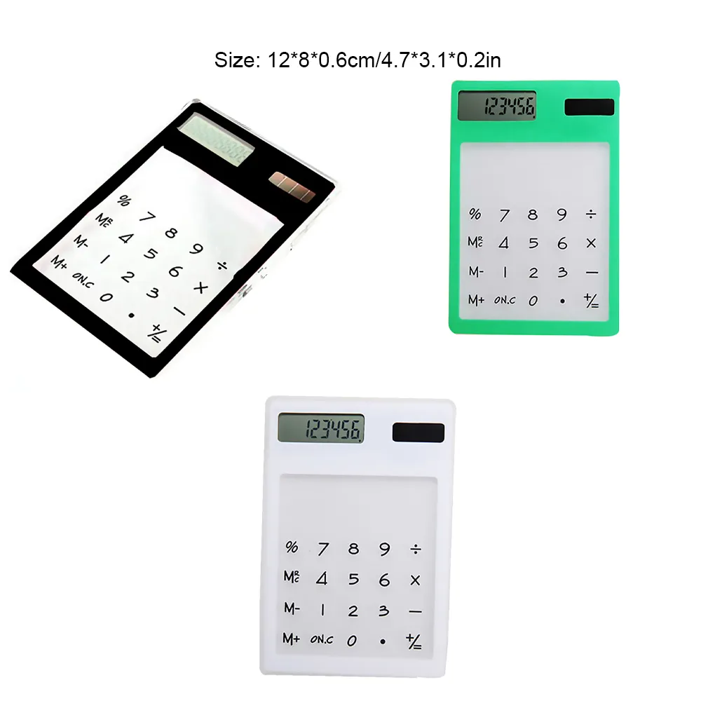 Home Scientific Calculator Multi Colors Transparent Touching Screen Energy Saving Solar 8 Bit Display Mini Calculator