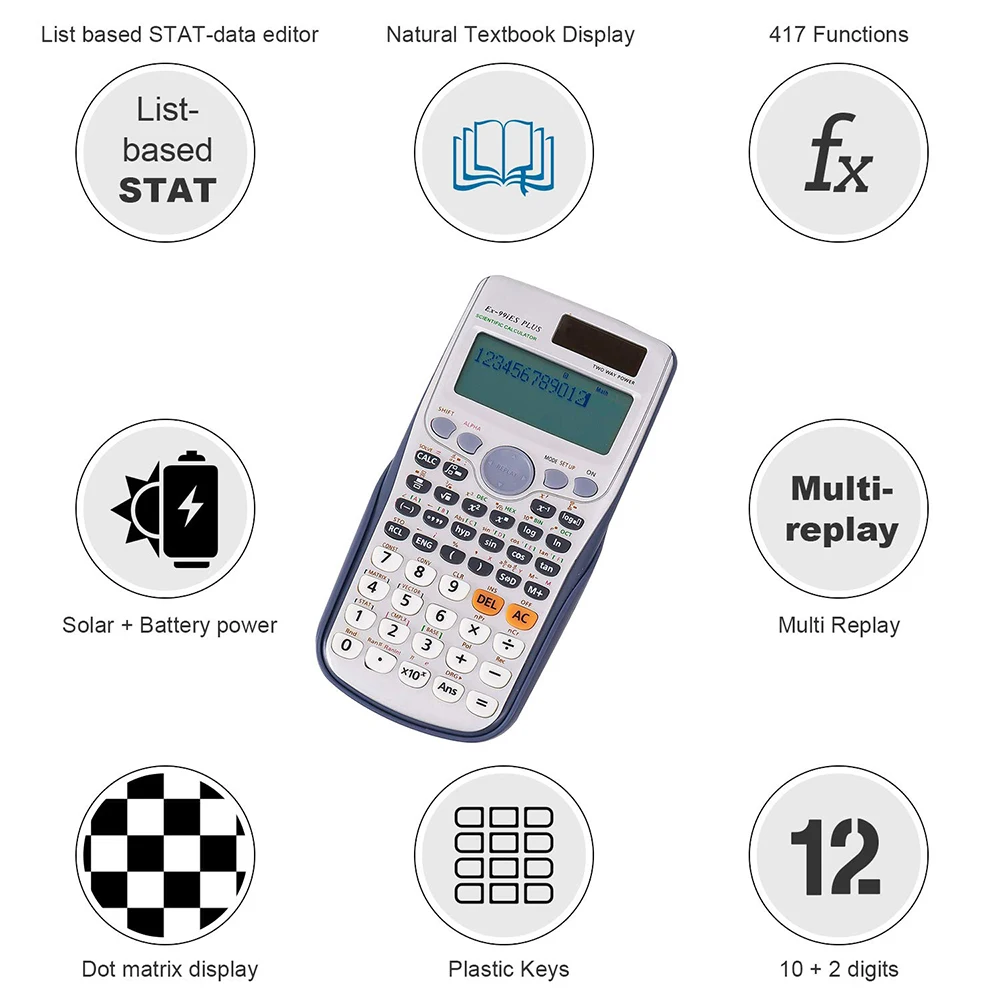 This is a full function scientific function calculator. Designed for students and office workers. Touch keyboard,easy to click. It has excellent quality, stable and responsive. Comprehensive scientific computing functions,considerate angles, easy viewing. It can help you solve problems you encounter in your study, convenient tocalculate.