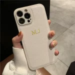 Personalised Customized Name Case For iPhone 14 13 12 11 Pro Max Initials Letters PU Leather DIY Engraved Cover 13 14 Pro Max