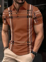 Retro Classic Plaid Print Men’s Short Sleeve Lapel Shirt For Summer Outdoor