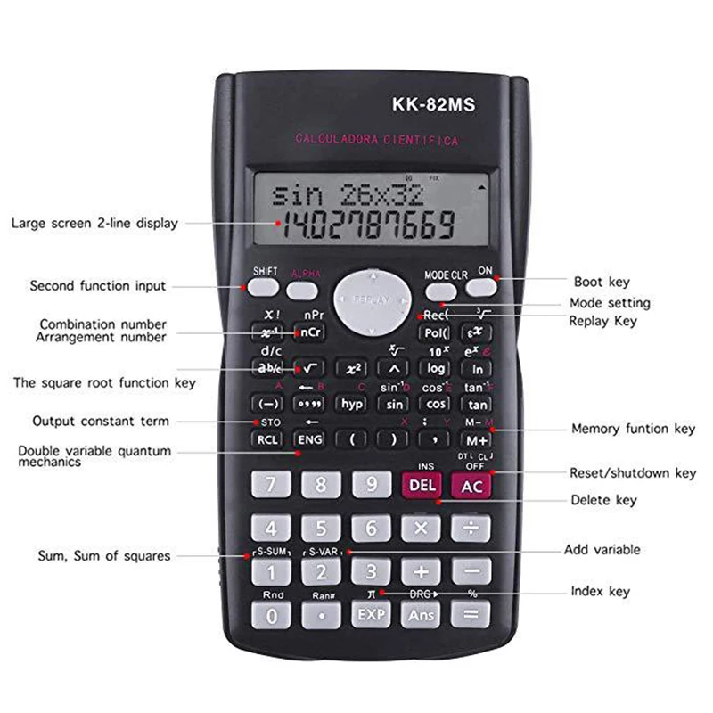 1.240 Functions: 1 Calculator meets so many calculation requirements for maths, algebra, fractions, trigonometry , statistics, accounting etc.