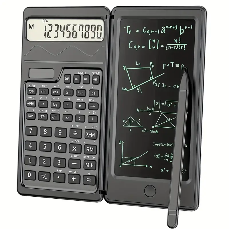 • 【Scienticfic Calculator with Notepad】Come with a 6.5-inch writing tablet and a pen, which allows you to take notes while calculating. You can press the delete button to erase the notes, and also can lock it to keep them.