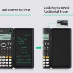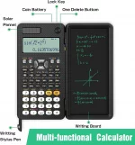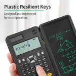 This science calculator is perfectly integrated with an additional lcd writing tablet, allowing students to write while calculating. The button of this calculator are made of plastic, which is more comfortable and more sensitive. The calculator base plate uses ultrasonic fusion technology, and the fit is super good. At the same time,solar calculator has dual-battery (solar and cell) , solar powered with a battery back up.