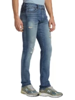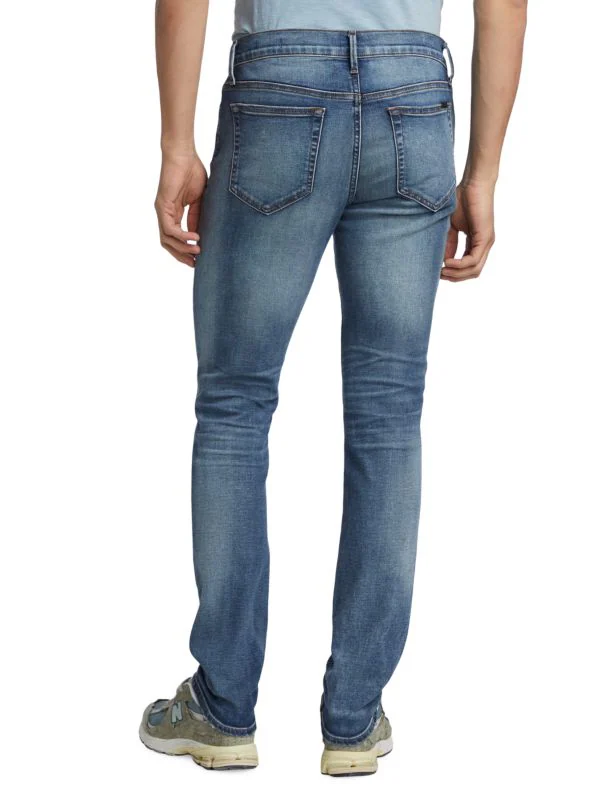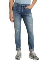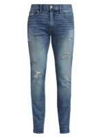 These skinny jeans in a five-pocket silhouette feature intentionally distressed accents.