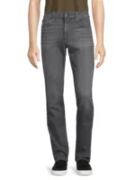 A faded wash and whiskered detail add a stylish texture to these slim-fit jeans.