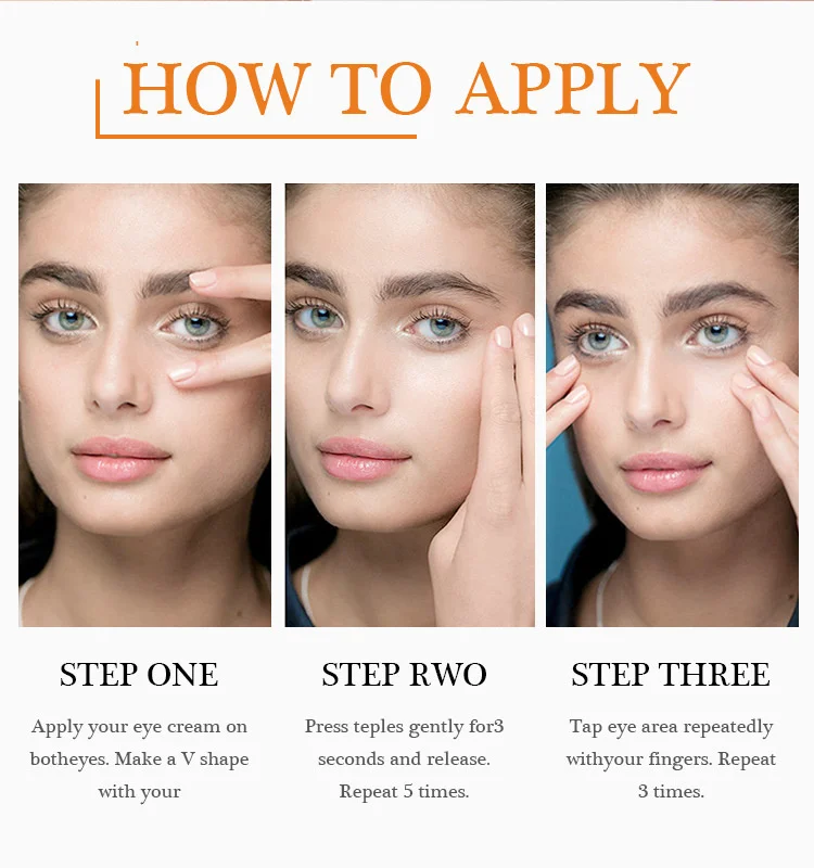 ▶ Reducing the appearance of eye bags & dark circles, awaking under eye area, solving under eye sagging & loss of firmness conditions, contracting puffiness and wrinkles, tightening the loose skins.